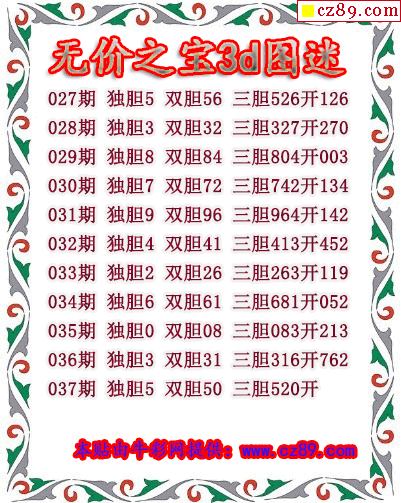 首页 > 福彩3D图谜 > 无价之宝送胆2026037期3d图谜(原创)